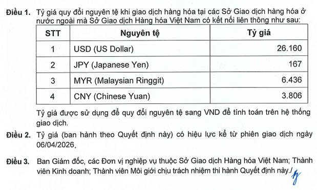 Công ty cổ phần đầu tư Phát Đạt Holdings xin thông báo về việc áp dụng tỷ giá nguyên tệ khi giao dịch hàng hóa tại các Sở Giao dịch hàng hóa ở nước ngoài mà Sở Giao dịch Hàng hóa Việt Nam có kết nối liên thông ngày 04/04/2026. Nội dung chi tiết như sau:
