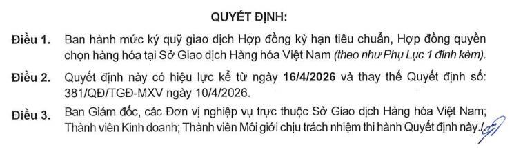 Công ty cổ phần đầu tư Phát Đạt Holdings xin thông báo về việc Sở Giao dịch Hàng hoá Việt Nam ban hành mức ký quỹ giao dịch hàng hóa tại Sở Giao dịch Hàng hóa Việt Nam ngày 15/04/2026. Nội dung chi tiết như sau: