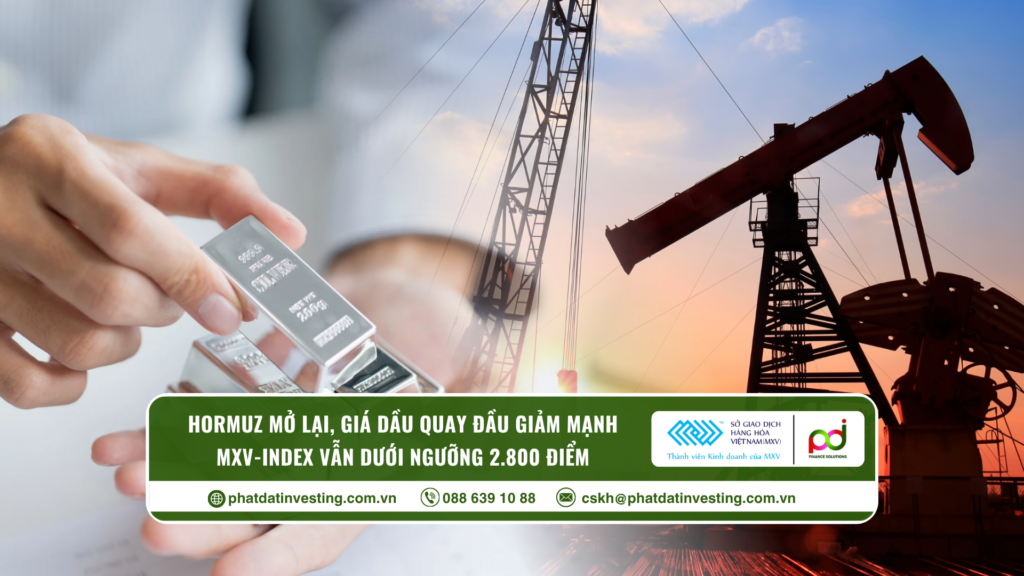 Thị trường hàng hóa nguyên liệu toàn cầu vừa trải qua một tuần đầy biến động khi rủi ro địa chính trị tại Trung Đông bất ngờ hạ nhiệt vào cuối tuần. Diễn biến này đã kéo giá dầu đảo chiều mạnh, đồng thời tạo ra sự phân hóa rõ rệt giữa các nhóm hàng hóa. Kết tuần, chỉ số Sở Giao dịch Hàng hóa Việt Nam (MXV-Index) dừng ở mức 2.773 điểm, tiếp tục nằm dưới mốc 2.800 điểm.